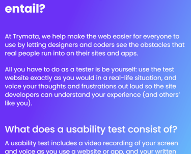 Trymata is a user testing platform that connects businesses with real people to get feedback on their websites and mobile apps. Essentially, they help companies understand how users interact with their digital products and identify areas for improvement.