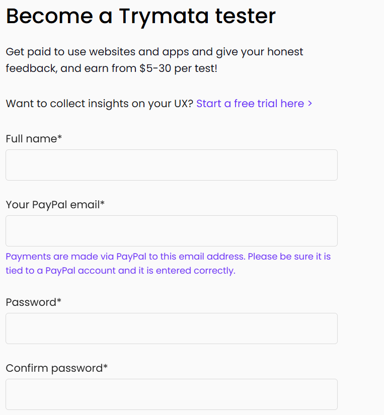 Visit the Trymata website and sign up as a tester.